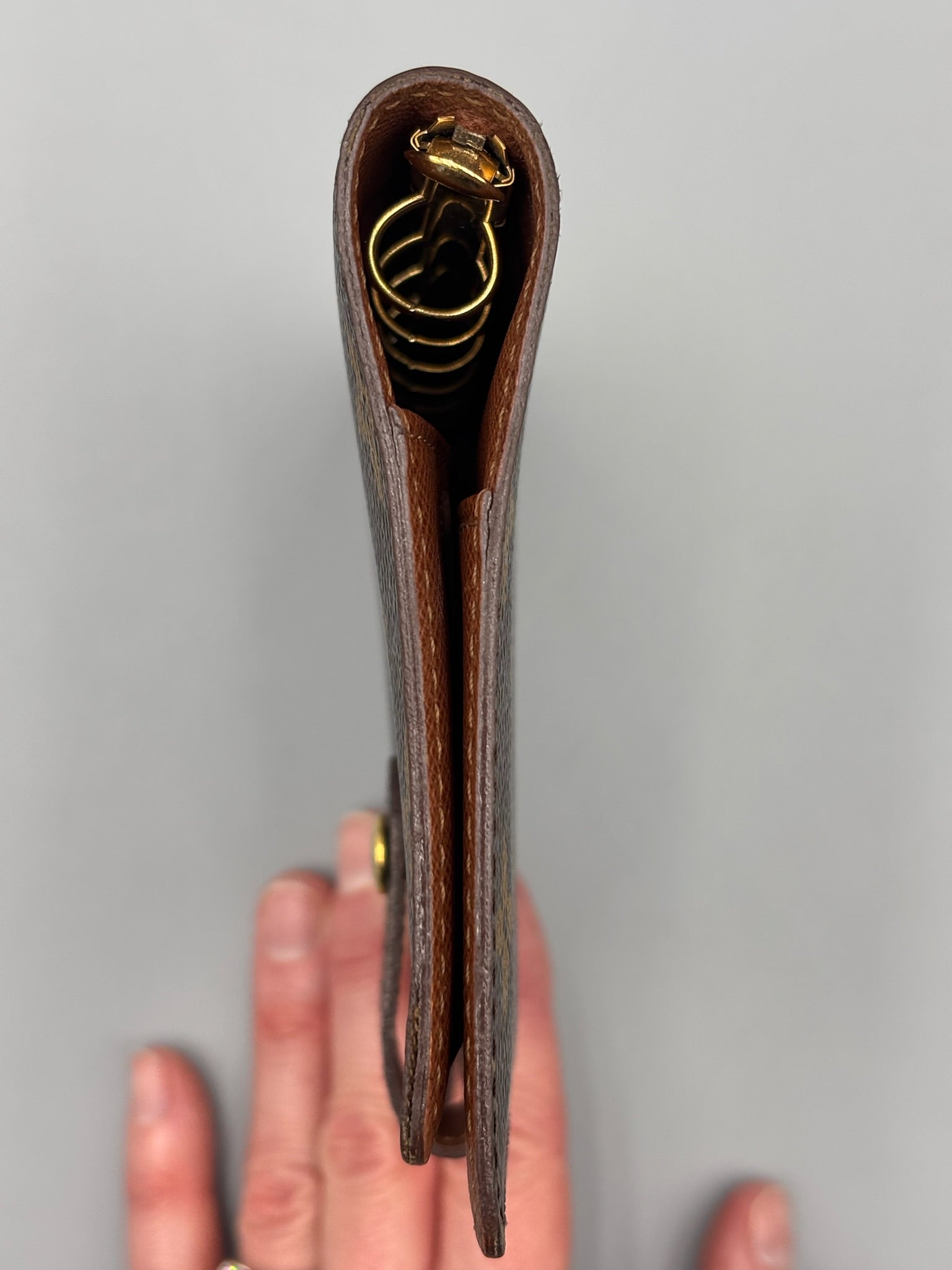 Condition: great!  Slight tarnish through out and minor peeling to interior slip pocket