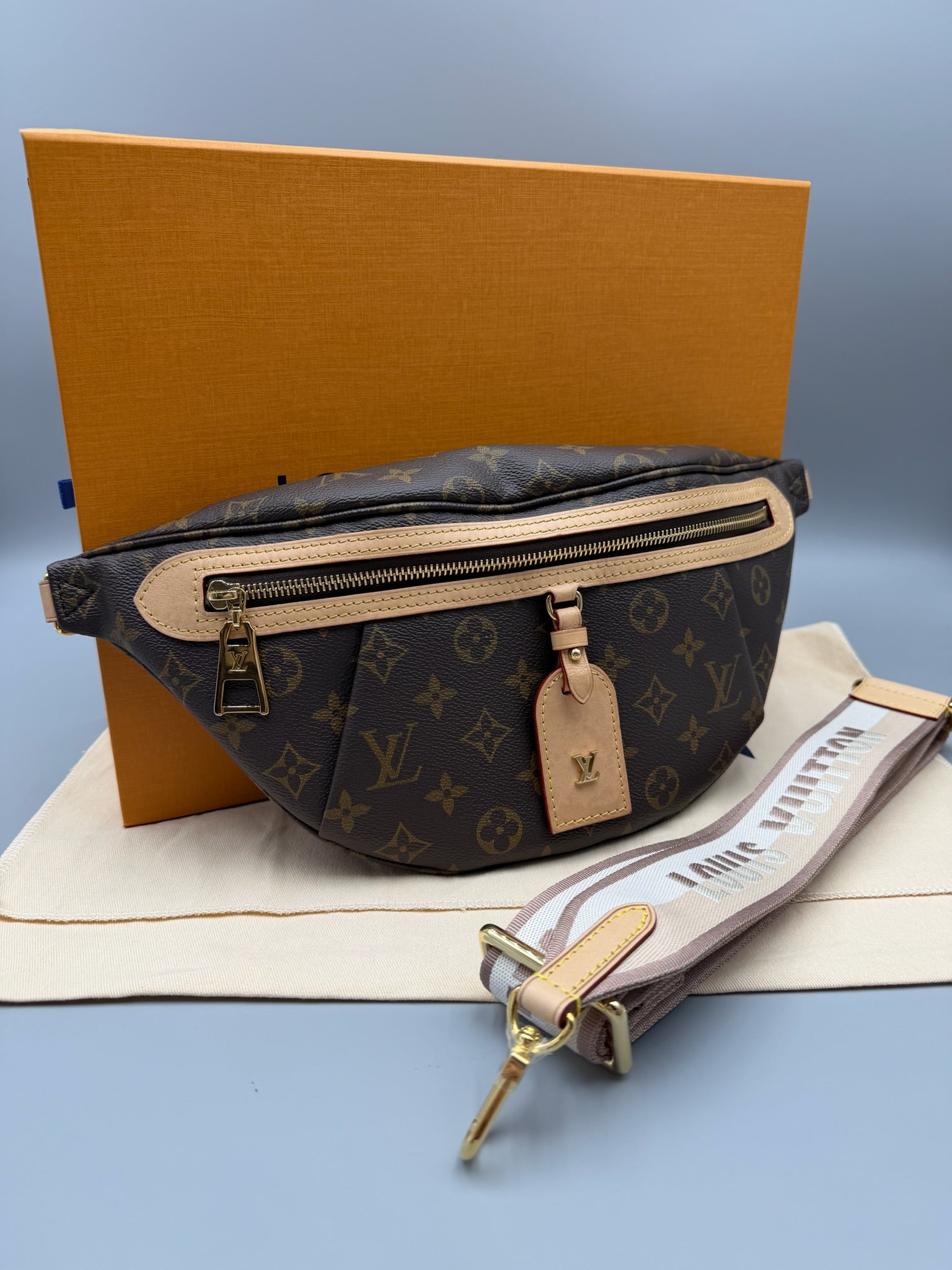 Accessories: Dust bag and box and strap (PLEASE NOTE- strap is an authentic strap but not the original one sold with the bumbag
