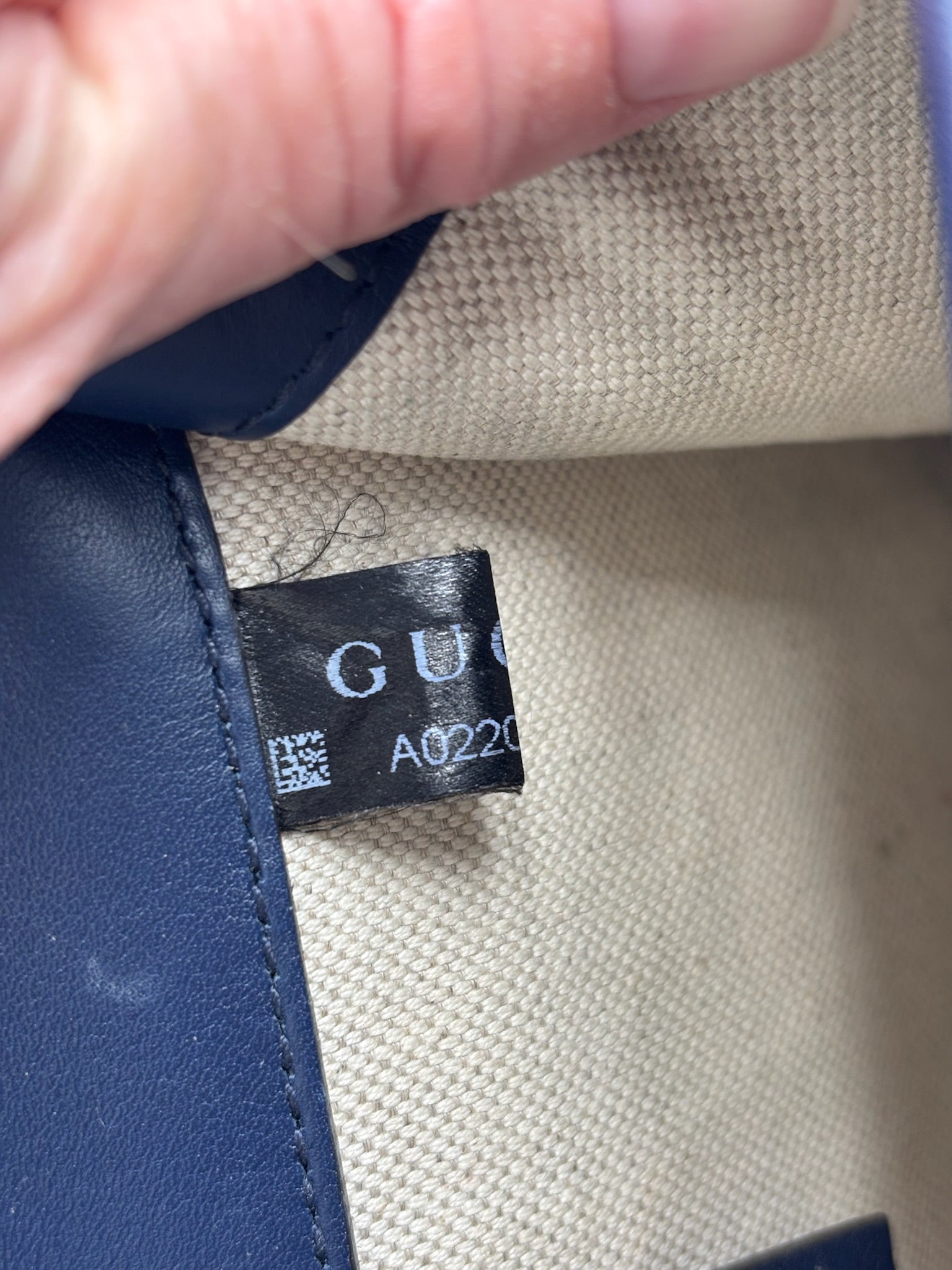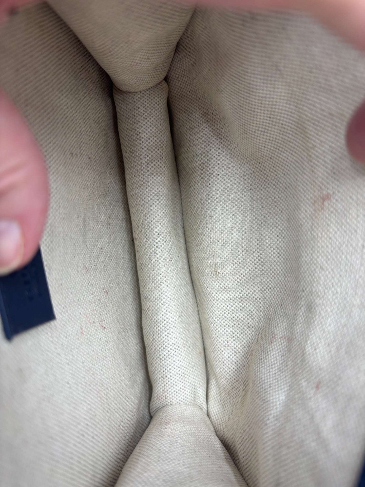Condition: Very good.  4 gems missing. Light wear to exterior leather