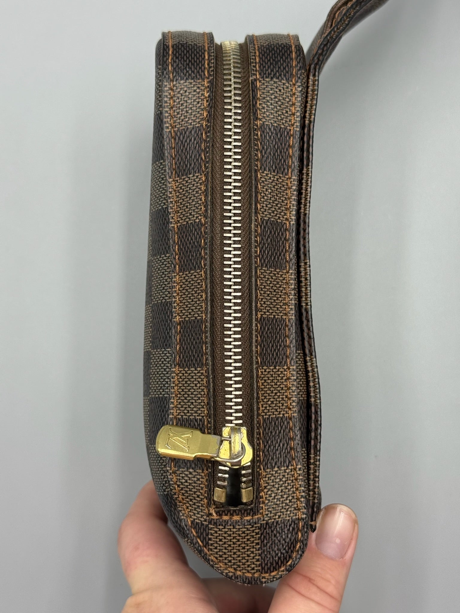 Condition: Very good. Minor discoloration to hardware and slight wear to exterior and trim